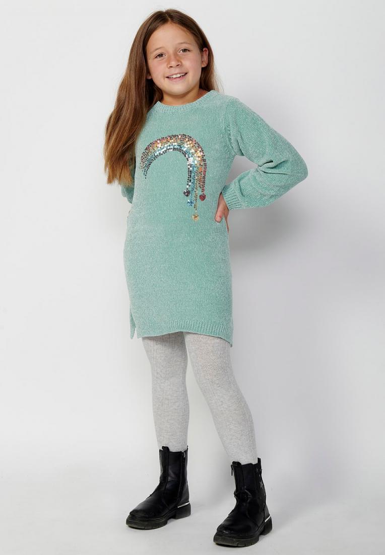 Koroshi CONJUNTOS | KIDS Vestido de manga larga con Cuello redondo y Acabados en rib con Detalle arco iris delantero color Kaki para Niña