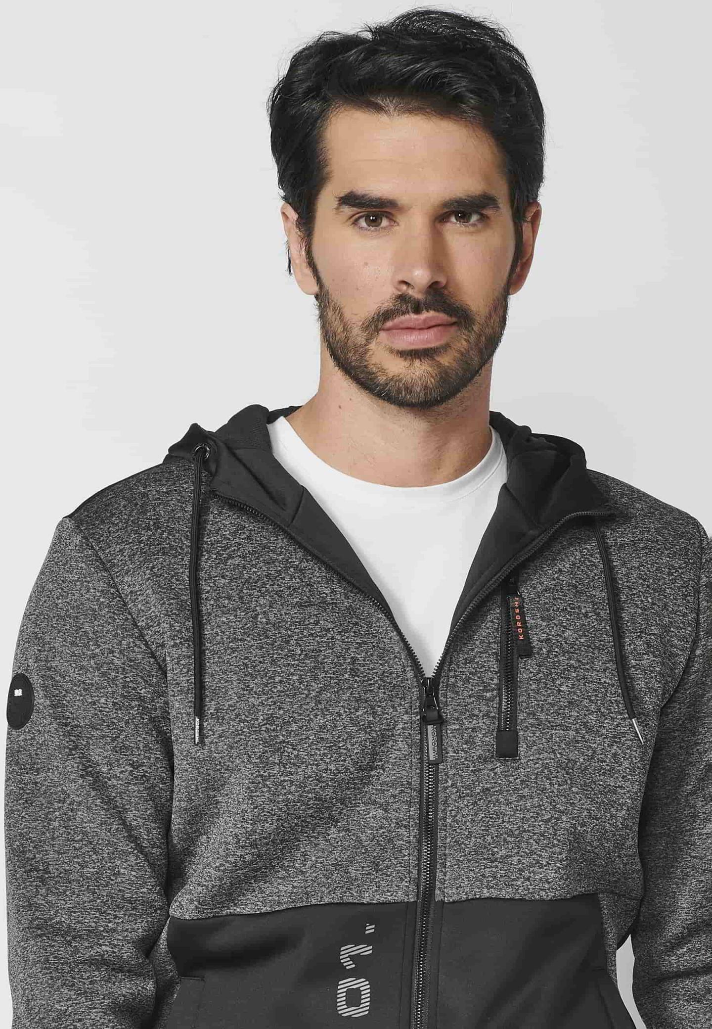Chaqueta sudadera de manga larga con capucha y bolsillos con cremallera color Negro para Hombre…