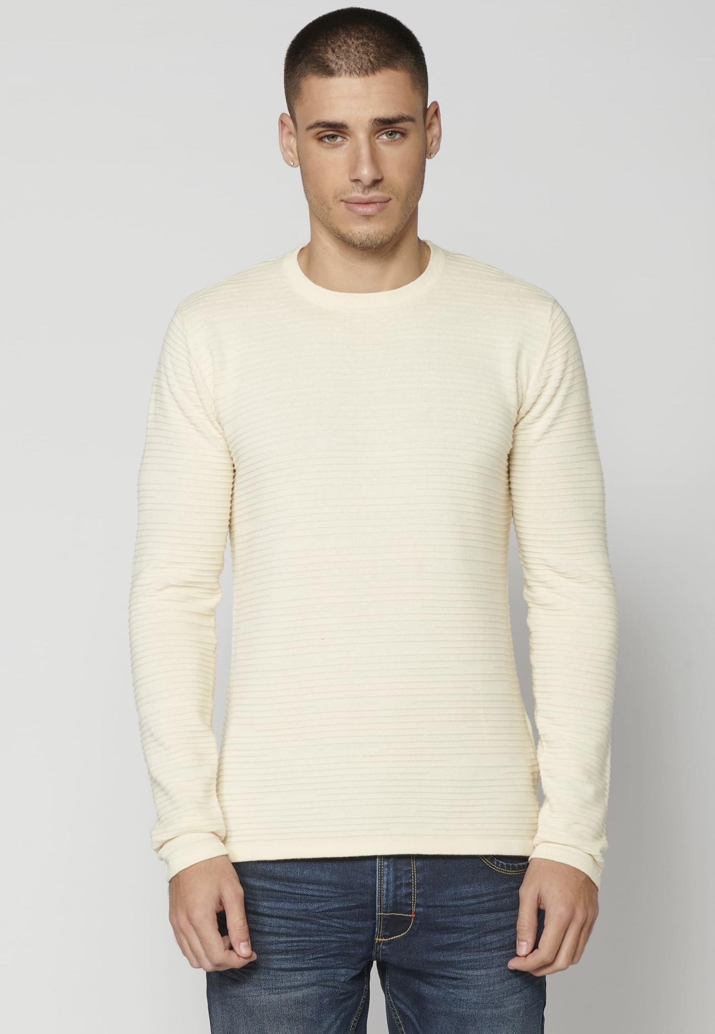 Jersey de punto texturizado. Manga larga y cuello redondo. Color Crema. Composición 100% Algodón.