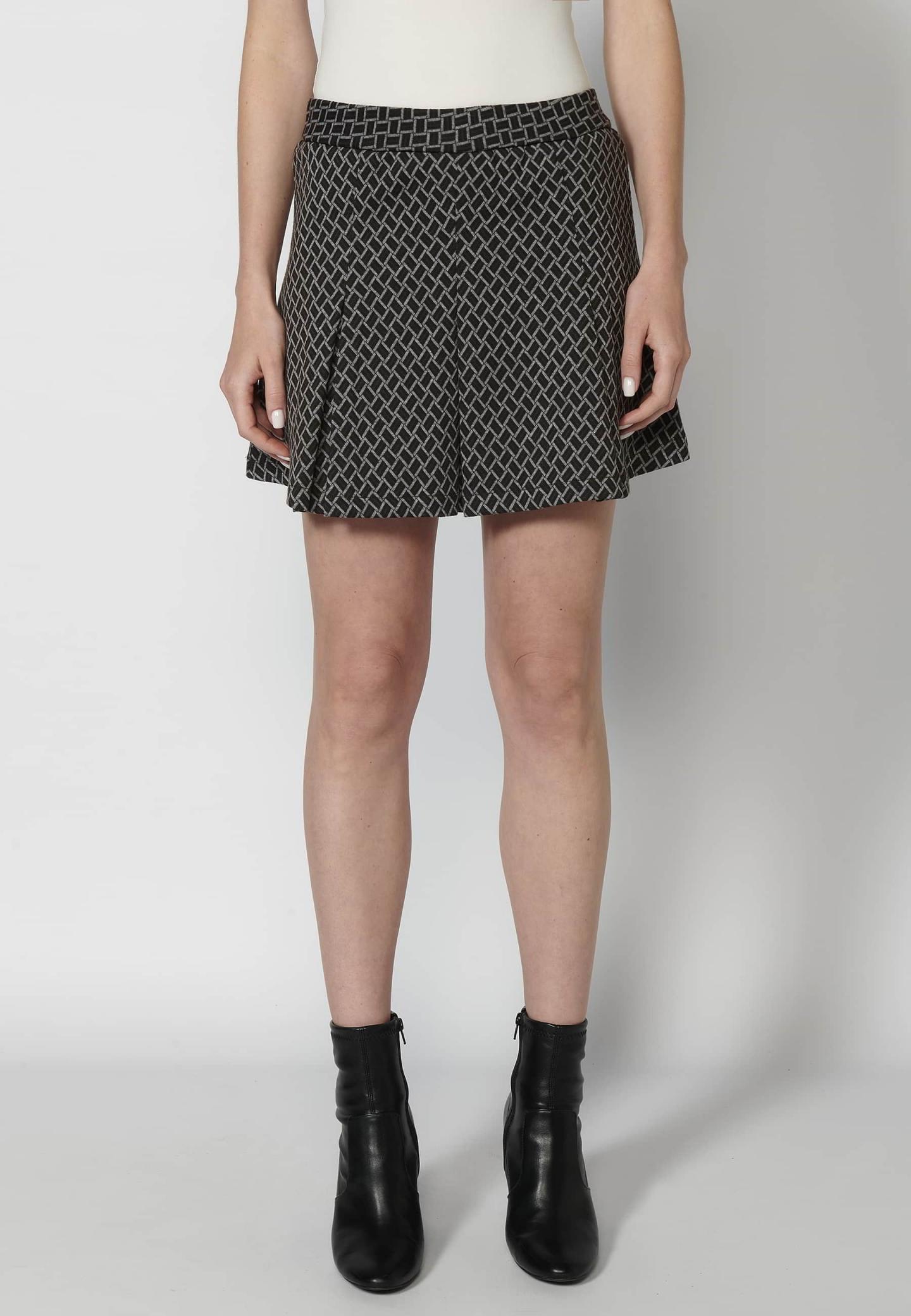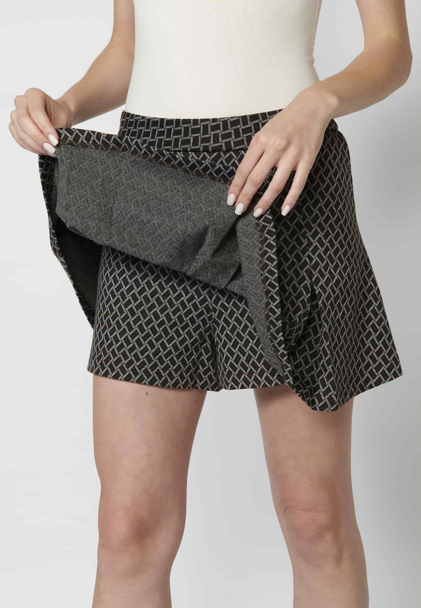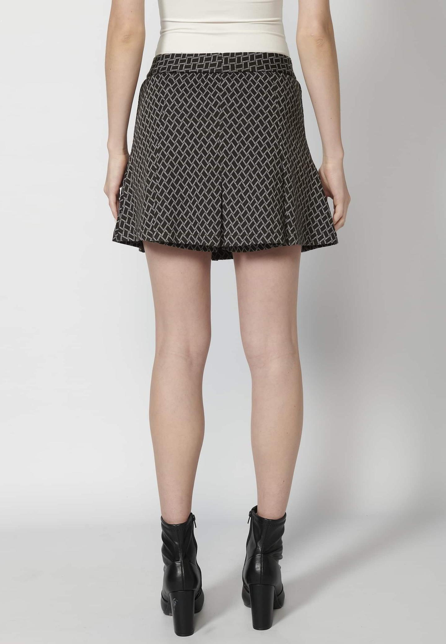 Falda pantalón corta plisada para mujer. Estampado escocés. Color Negro.Composición 97% Poliéster 3% Elastano