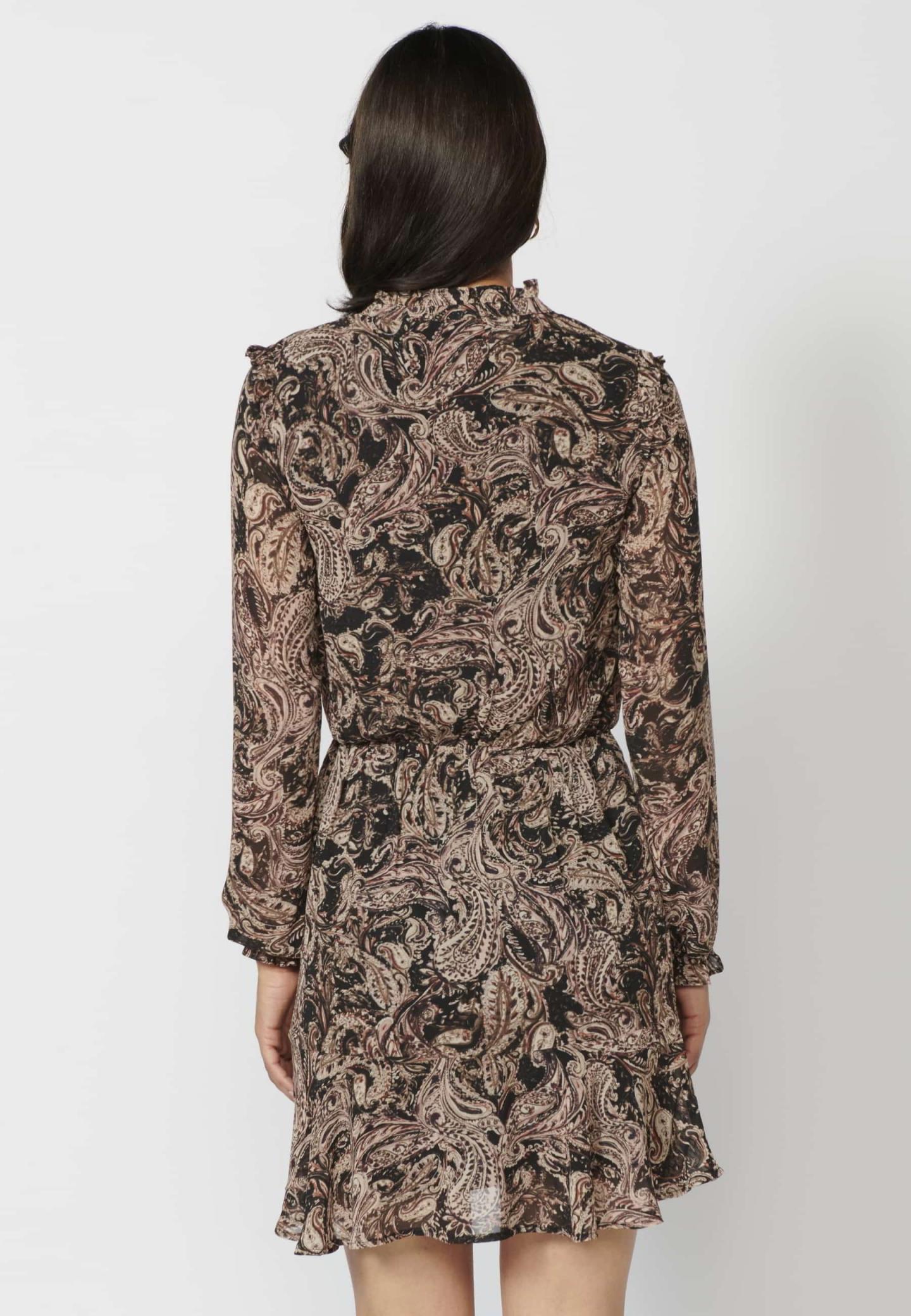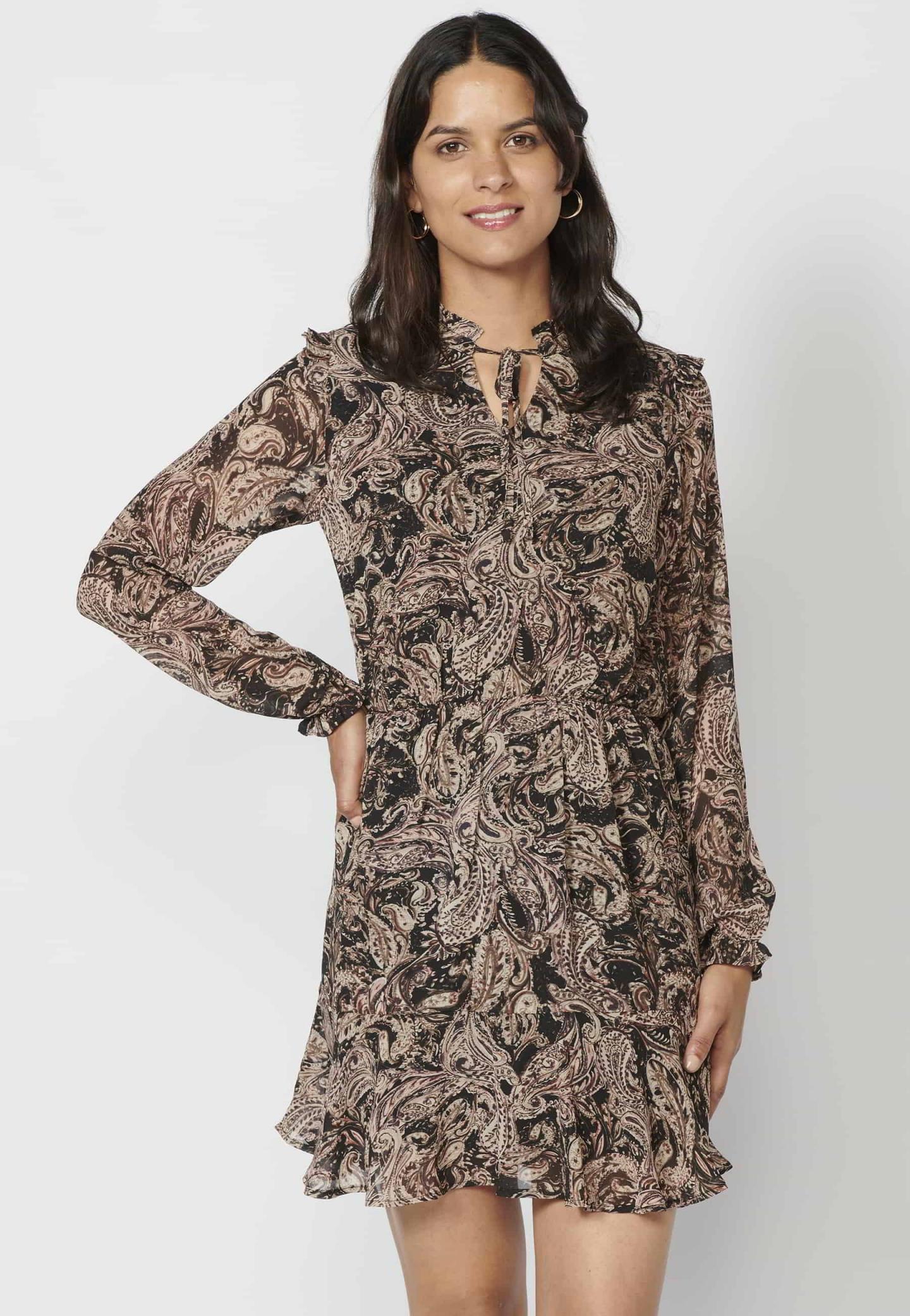 Koroshi | MUJER Vestido corto de manga larga de tela plisada con estampado floral color Negro para Mujer