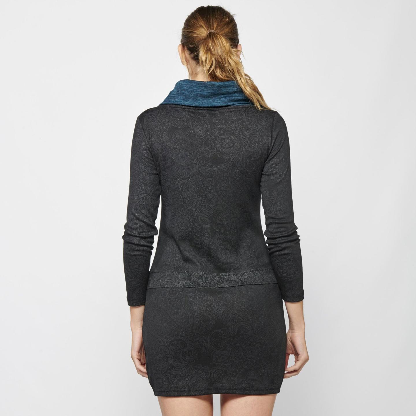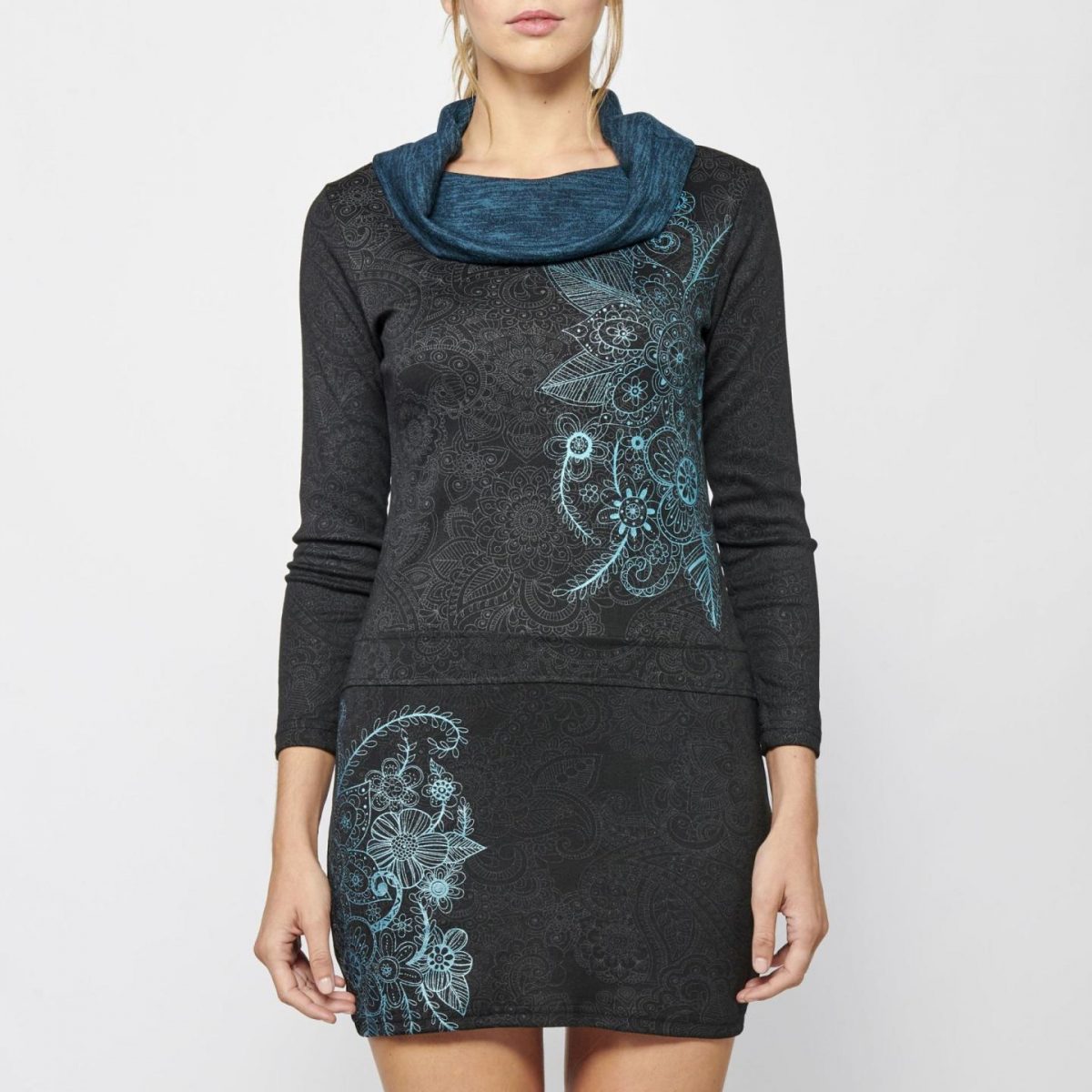 Vestido estampado de mandalas . Cuello vuelto de tweed elástico. Manga larga. Largo encima rodilla. Detalles en lurex. Composición 95% poliester 5% elástico La modelo usa la talla S