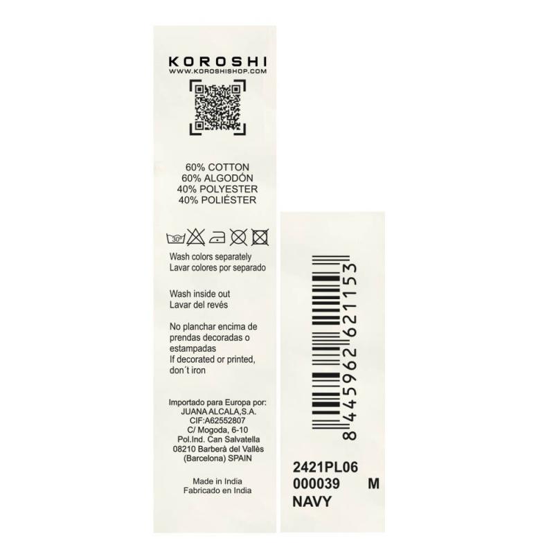 El modelo lleva la talla M Añade un toque de elegancia y confort a tu guardarropa con el Polo de Manga Larga con Cuello Camisero para hombre de la marca Koröshi. Este polo, en un sofisticado color navy, es perfecto para cualquier ocasión, combinando estilo y funcionalidad en un diseño clásico y versátil. Confeccionado con una mezcla de 60% algodón y 40% poliéster, este polo ofrece una textura suave y transpirable, asegurando una sensación de confort durante todo el día. El algodón proporciona suavidad y comodidad, mientras que el poliéster añade durabilidad y resistencia, manteniendo la prenda en excelente estado uso tras uso. El diseño de cuello camisero añade un toque de elegancia y formalidad, adecuado para ocasiones tanto casuales como más formales. Las mangas largas son ideales para los días más frescos, proporcionando una cobertura adicional sin sacrificar el estilo. El color navy, clásico y versátil, facilita la combinación con cualquier otra prenda y accesorio, asegurando que siempre luzcas impecable y a la moda. El Polo de Manga Larga con Cuello Camisero de Koröshi es extremadamente versátil. Puedes combinarlo con jeans para un look casual y relajado, o con pantalones chinos y zapatos para un estilo más pulido y elegante. Su diseño atemporal y sofisticado lo convierte en una prenda esencial que se adapta a diversas ocasiones y estilos. No pierdas la oportunidad de añadir esta prenda única a tu colección. La alta calidad de los materiales y el diseño detallado aseguran que este polo se convierta en uno de tus favoritos. Con el Polo de Manga Larga con Cuello Camisero de Koröshi, disfrutarás de la combinación perfecta de estilo, confort y elegancia. Renueva tu estilo con este espectacular polo y destaca con la sofisticación y comodidad que solo Koröshi puede ofrecer. ¡Haz tu compra ahora y transforma tu guardarropa con este increíble polo de manga larga!