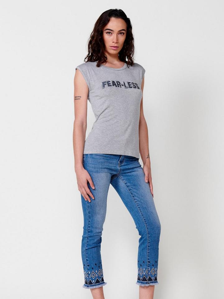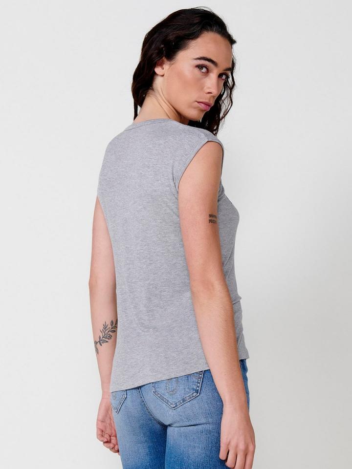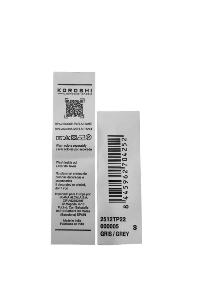 La modelo usa la talla S ¡Luce con mucho estilo con nuestro Top de Cuello Redondo para Mujer en color gris! Este top es perfecto para realzar tu figura femenina, gracias a su tela suave y de ajuste cómodo que se adapta perfectamente a tu cuerpo. El estampado en foil con detalles de brillos en el frontal le aporta un toque de luminosidad y sofisticación, ideal para destacar en cualquier ocasión. El diseño minimalista y chic, combinado con la placa metálica con el logo Koröshi en el frontal, le da un aire exclusivo y moderno que no pasará desapercibido. Hecho con una mezcla de 95% viscosa y 5% elastano, este top ofrece una sensación de suavidad y elasticidad, brindándote comodidad y libertad de movimiento durante todo el día. El color negro lo convierte en una pieza versátil que puedes combinar con jeans, faldas o pantalones para crear looks tanto casuales como más arreglados. Si buscas un top que combine elegancia, brillo y confort, este es el ideal para ti. ¡Hazlo tuyo y deja que tu estilo brille con el toque exclusivo de Koroshi!